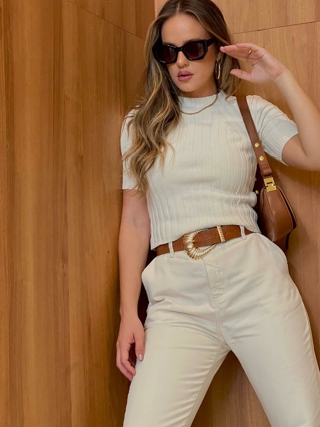 T-SHIRT TRICOT MODAL CANELADA COM GOLA REDONDA, MANGA CURTA, MODELAGEM JUSTA AO CORPO.