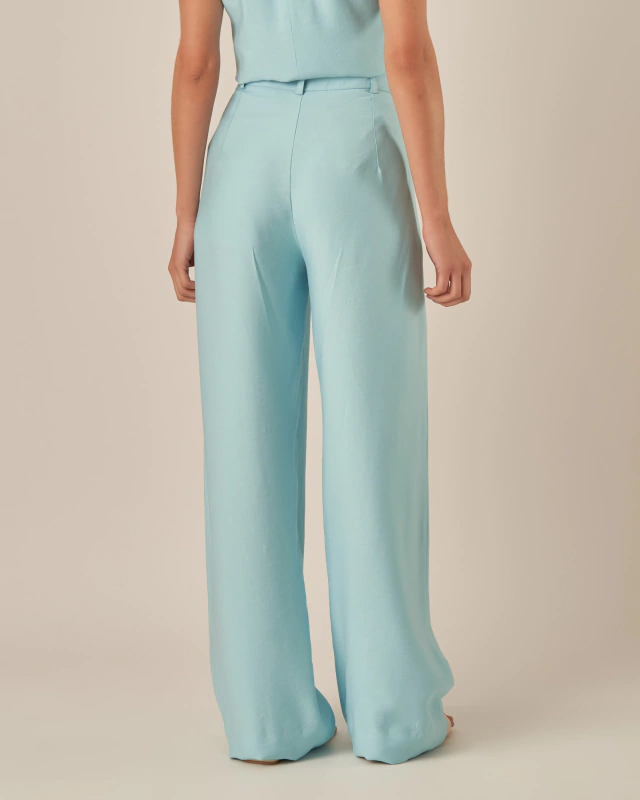 Calça produzida em tecido de aspecto nobre, com viscose em sua composição, leve e confortável.