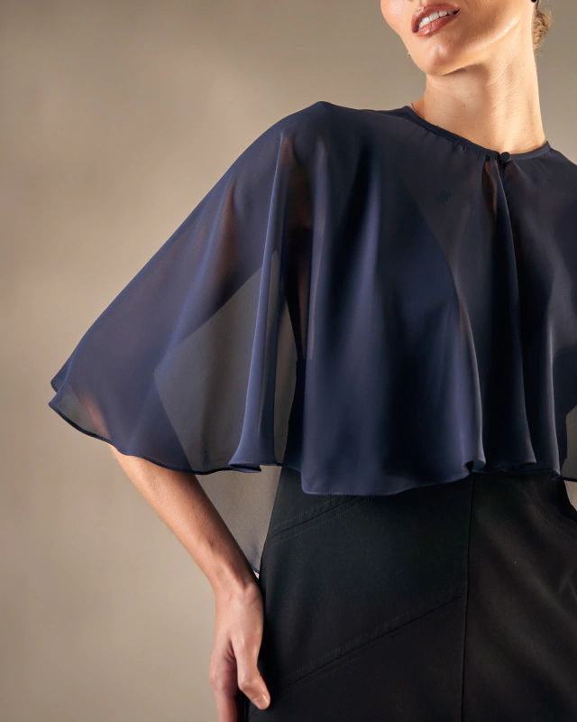 Capa Le Dress Atelier Leah é a escolha perfeita para quem busca elegância e sofisticação em um único look. Desenvolvida em musseline de alta qualidade, esta capa curta apresenta uma modelagem godê que confere movimento e leveza à peça.