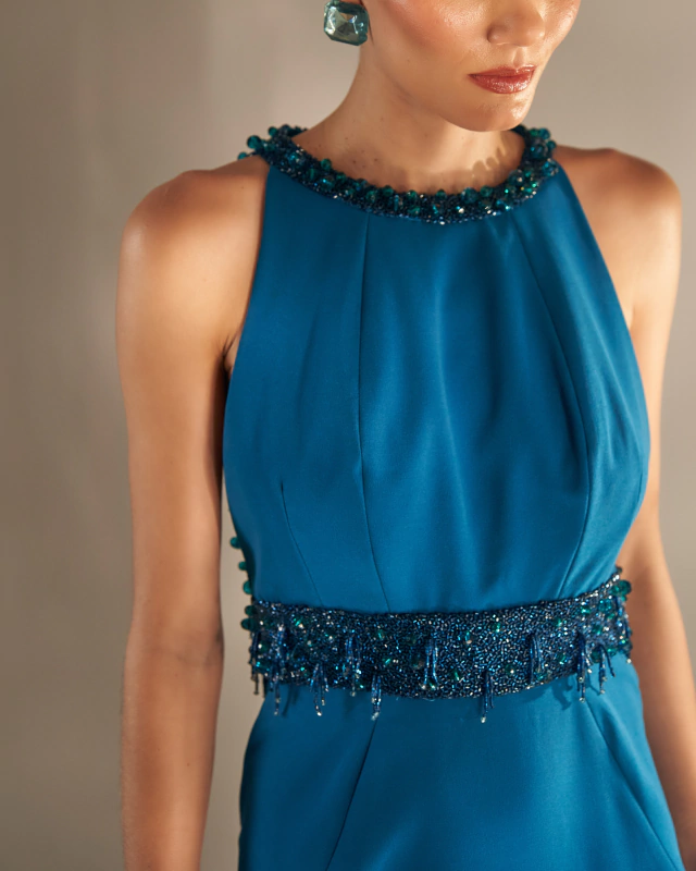 Vestido Le Dress Atelier Angelina Bordado Azul Petróleo é a escolha perfeita para quem busca sofisticação e exclusividade em moda festa. Desenvolvido em tecido plano e encorpado, este vestido longo destaca-se pelo seu corte frente única e gola arredondada, que confere um toque de delicadeza.